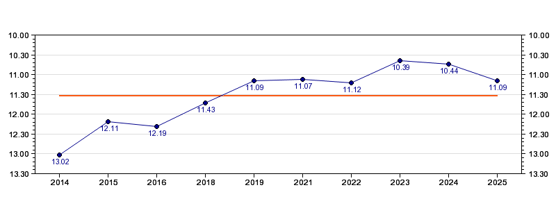 Antall deltagelser10 (i perioden 2014 - 2025)