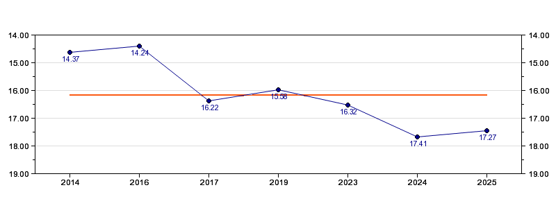 | Forrige tid | 17.27 (2025) |