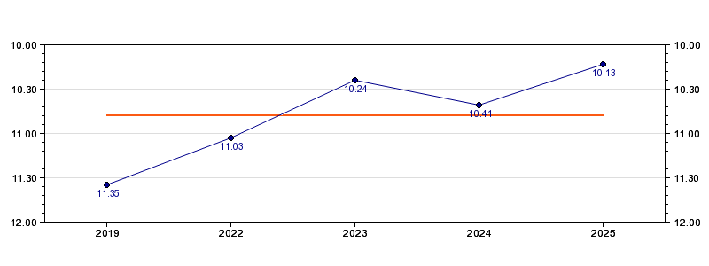 | Forrige tid | 10.13 (2025) |