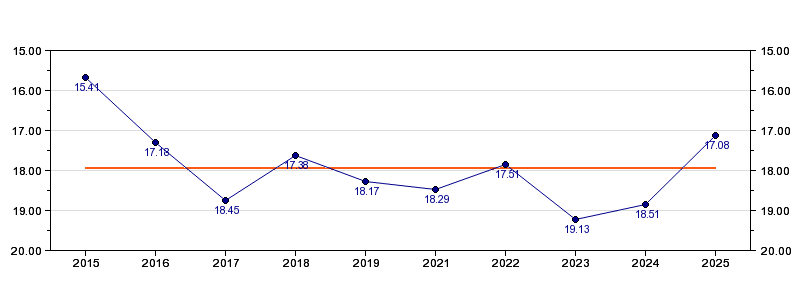 | Forrige tid | 17.08 (2025) |
