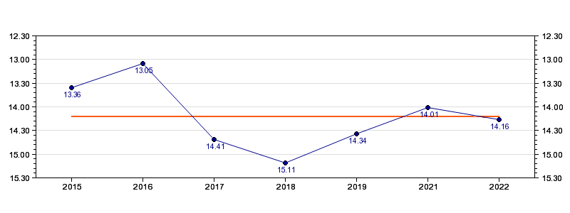 | Forrige tid | 14.16 (2022) |