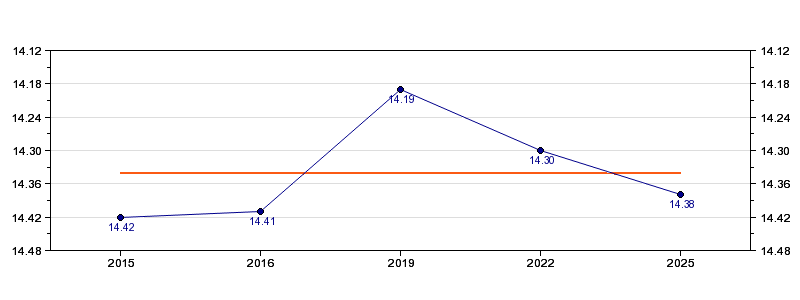 | Forrige tid | 14.38 (2025) |