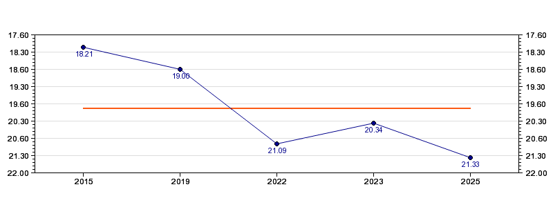 | Forrige tid | 21.33 (2025) |