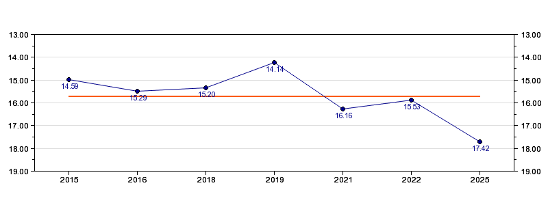 | Forrige tid | 17.42 (2025) |