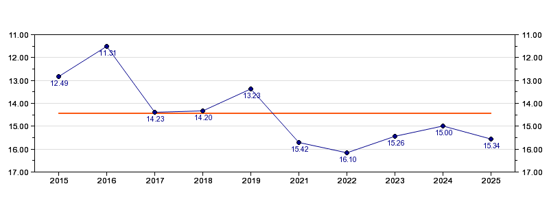 | Antall deltagelser | 10 (i perioden 2015 - 2025) |