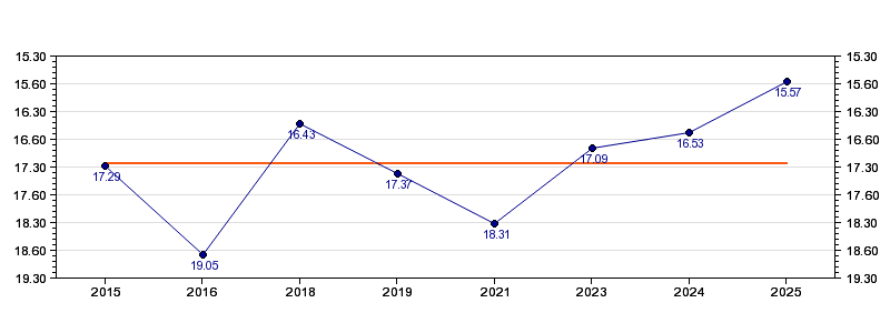 Antall deltagelser8 (i perioden 2015 - 2025)
