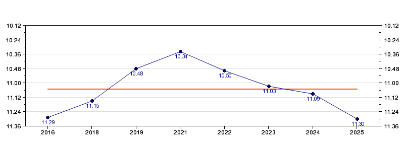 | Forrige tid | 11.30 (2025) |
