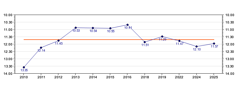 | Antall deltagelser | 12 (i perioden 2010 - 2025) |