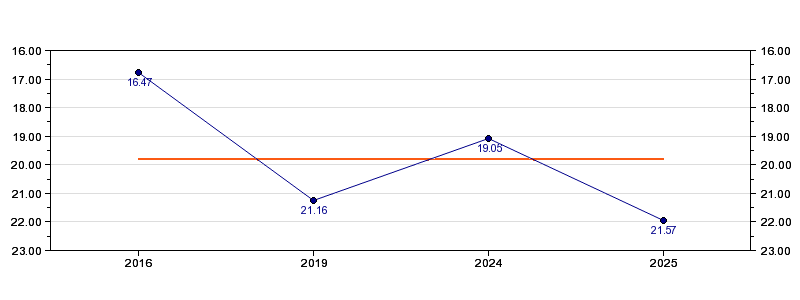 | Antall deltagelser | 4 (i perioden 2016 - 2025) |