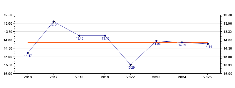 2025Kalkulator14:14 (1270 m/h)02:30 (1291 m/h, 101 %)06:56 (04:26, 1241 m/h, 97 %)12:28 (05:32, 1239 m/h, 97 %)14:14 (01:46, 1412 m/h, 111 %)