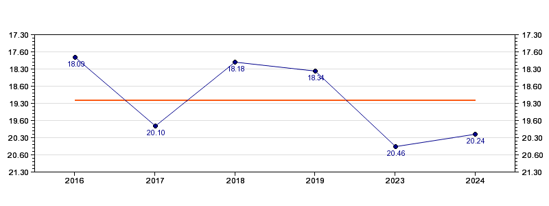 | Forrige tid | 20.24 (2024) |