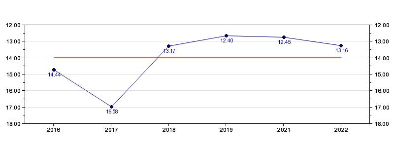 | Forrige tid | 13.16 (2022) |