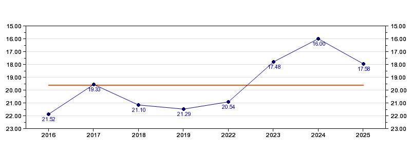 | Antall deltagelser | 8 (i perioden 2016 - 2025) |