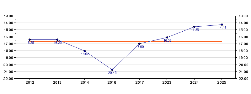 Antall deltagelser8 (i perioden 2012 - 2025)