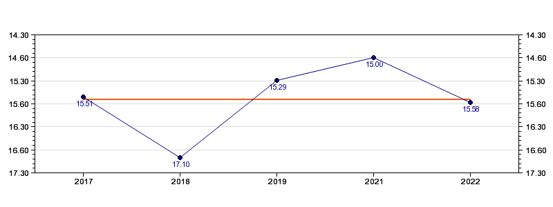 | Forrige tid | 15.58 (2022) |