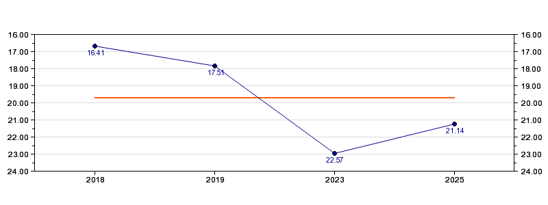 | Forrige tid | 21.14 (2025) |