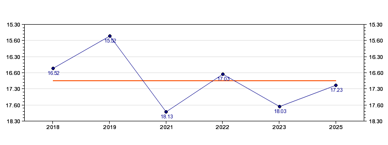| Antall deltagelser | 6 (i perioden 2018 - 2025) |