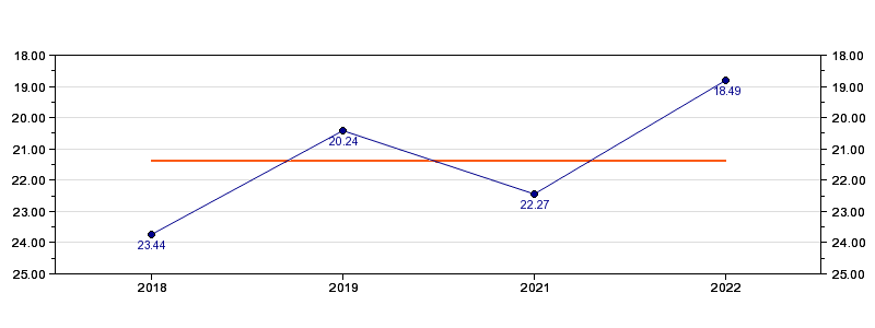 | Forrige tid | 18.49 (2022) |
