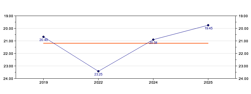 | Forrige tid | 19.45 (2025) |