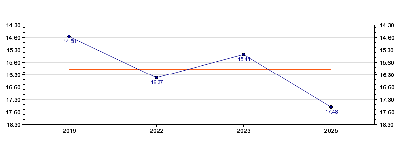 | Forrige tid | 17.48 (2025) |