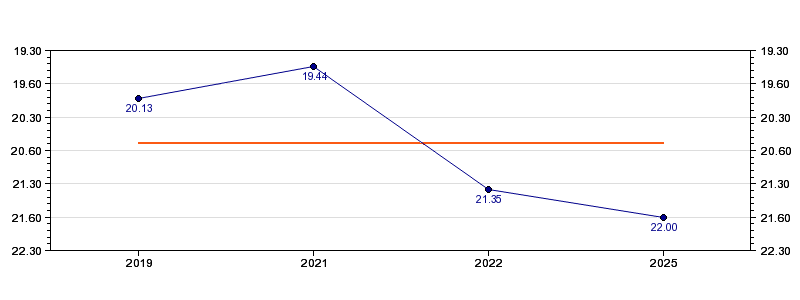 | Forrige tid | 22.00 (2025) |