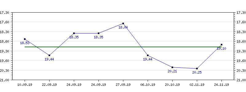 | 10.09.2019 | 18.53 | 22.09.2019 | 19.44 | 24.09.2019 | 18.35 | 24.09.2019 | 18.35 | 27.09.2019 | 18.04 | 06.10.2019 | 19.44 |