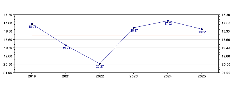 | Forrige tid | 18.22 (2025) |