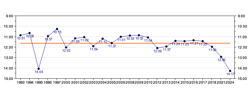 | Antall deltagelser | 24 (i perioden 1993 - 2024) |