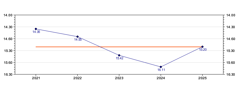 | Forrige tid | 15.20 (2025) |