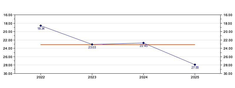 | Forrige tid | 27.55 (2025) |