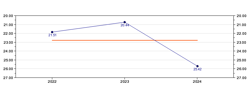 | Forrige tid | 25.42 (2024) |