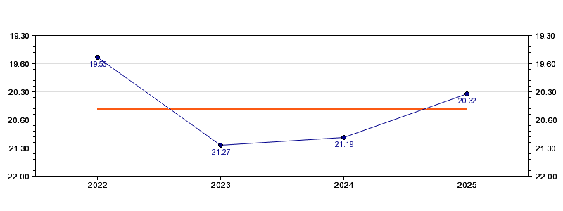 | Forrige tid | 20.32 (2025) |