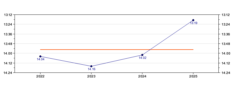 | Forrige tid | 13.19 (2025) |