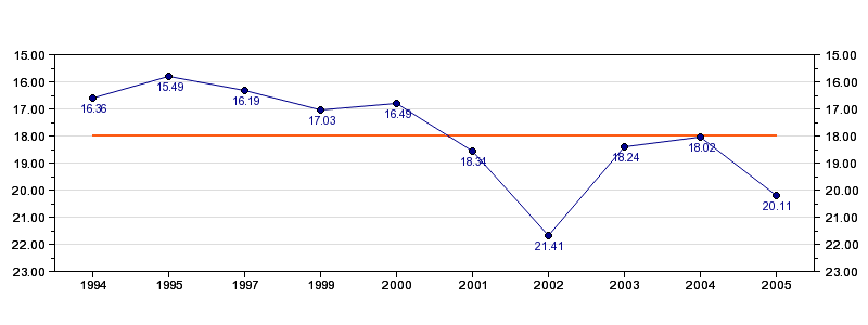 Antall deltagelser10 (i perioden 1994 - 2005)