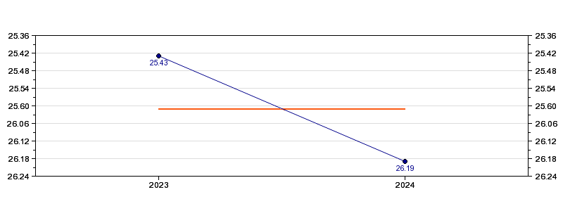 | Forrige tid | 26.19 (2024) |