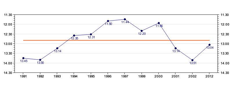 Antall deltagelser12 (i perioden 1991 - 2012)