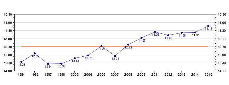 | Antall deltagelser | 15 (i perioden 1984 - 2015) |