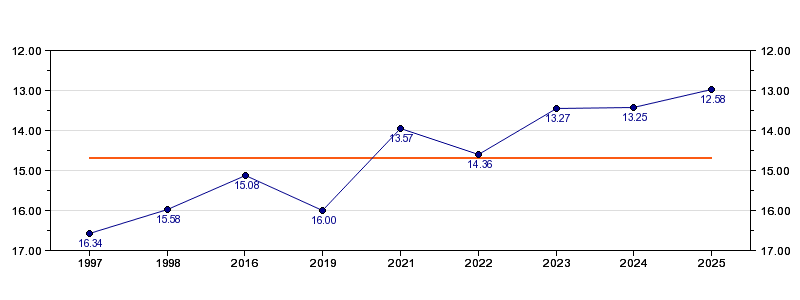 | Forrige tid | 12.58 (2025) |