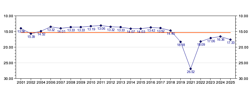 Antall deltagelser22 (i perioden 2001 - 2025)