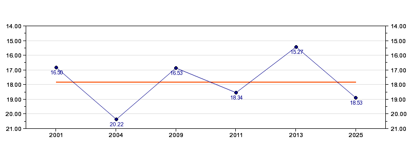 Antall deltagelser6 (i perioden 2001 - 2025)
