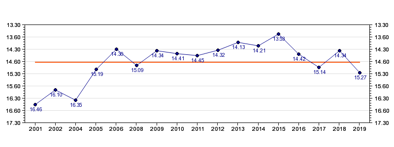 | Antall deltagelser | 17 (i perioden 2001 - 2019) |