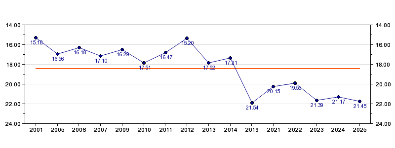 Antall deltagelser16 (i perioden 2001 - 2025)