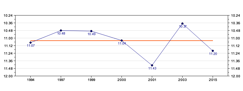 | Forrige tid | 11.20 (2015) |
