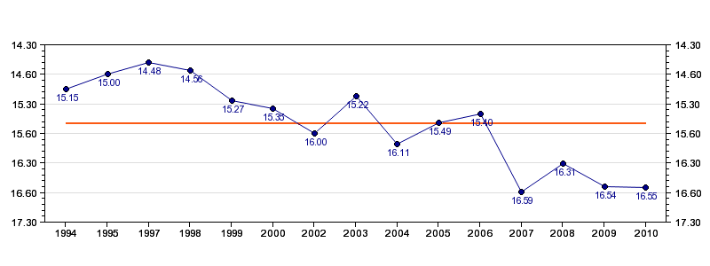Antall deltagelser15 (i perioden 1994 - 2010)