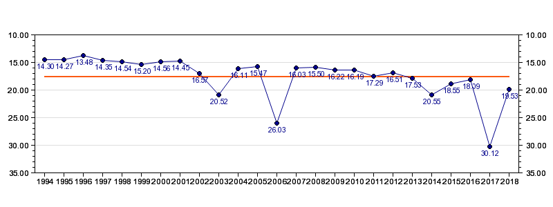 | Antall deltagelser | 25 (i perioden 1994 - 2018) |