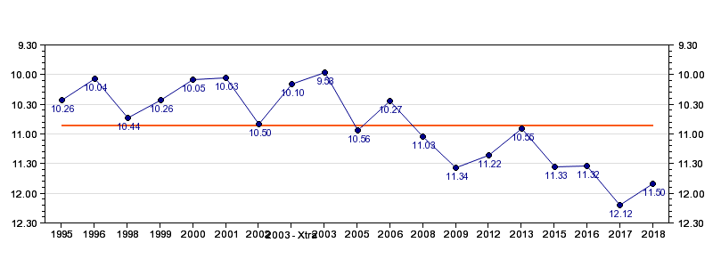 | Forrige tid | 11.50 (2018) |