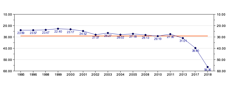 | Forrige tid | 56.36 (2018) |