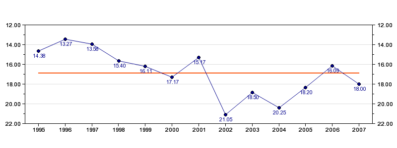 | Antall deltagelser | 13 (i perioden 1995 - 2007) |
