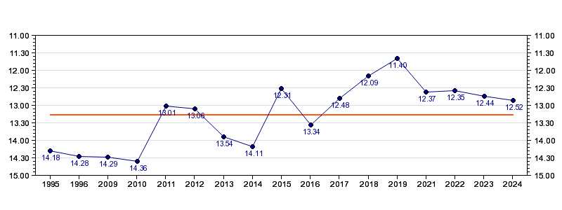 Antall deltagelser17 (i perioden 1995 - 2024)