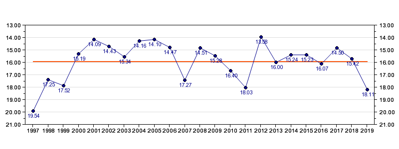 2019Kalkulator18:11 (994 m/h)02:58 (1088 m/h, 109 %)00:00 (-2:-58, -1855 m/h, -187 %)15:50 (15:50, 433 m/h, 43 %)18:11 (02:21, 1062 m/h, 106 %)